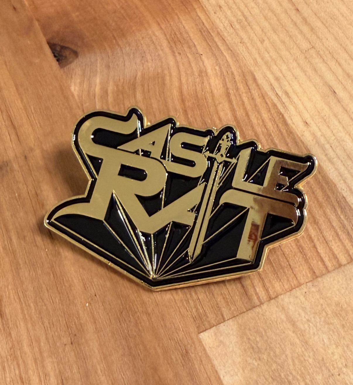 Metallic Gold Castle Rat Logo Pin with Black Enamel